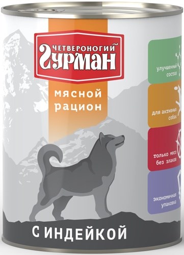 Четвероногий Гурман 41378 кон.д/собак Мясной рацион с Индейкой 850г