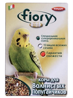 FIORY ORO корм для волнистых попугаев 400 г Повседневный сбалансированный корм для волнистых попугаев.Корм состоит из двенадцати различных типов семян. 70% - жизненно необходимые ингредиенты для питания птиц. 30% - полезные добавки и лакомства. Для улучшения вкусовых качеств добавлены семена аниса, сладкого укропа, сафлора, периллы и других цветочных семян, которые очень нравятся волнистым попугайчикам.Сафлор - маслянистые семена, которые облегчают запоры, а также улучшаю пигментацию оперения.Сделано в Италии.