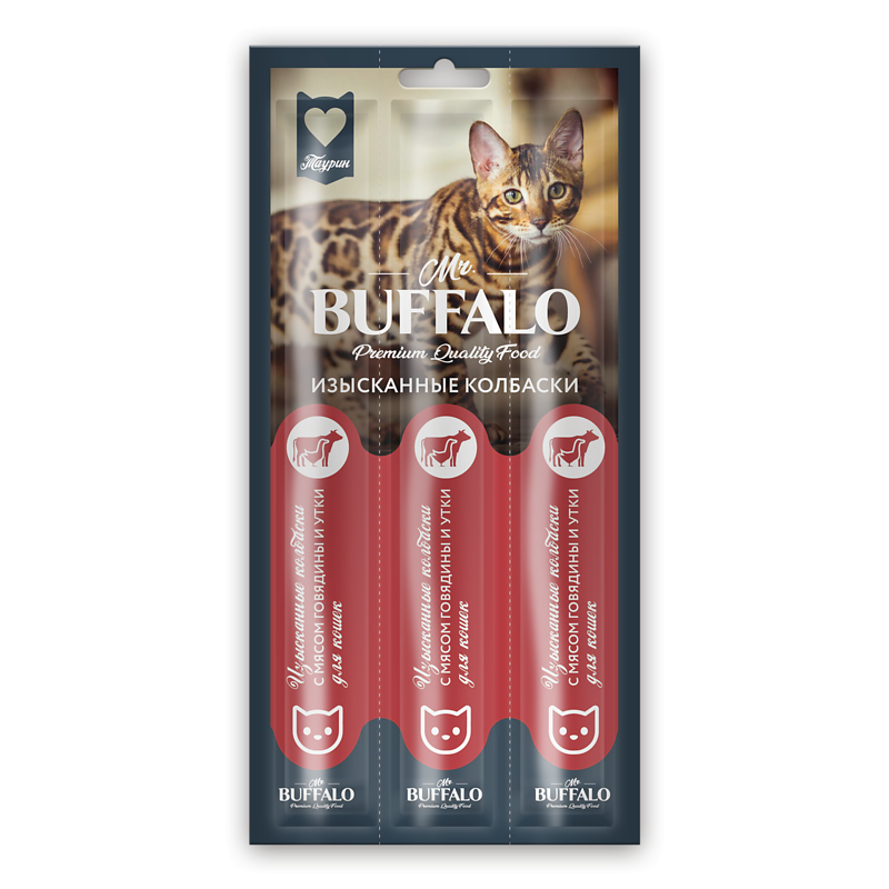 Изысканные колбаски Mr. Buffalo Beef flavor cat sticks — это аппетитное и полезное угощение, которое придется по вкусу даже самой привередливой и избалованной кошке. Каждая колбаска индивидуально упакована, что позволяет сохранить запах и вкусовые качества надолго. Лакомство содержит таурин — важную аминокислоту для здоровья сердечно-сосудистой системы и остроты зрения. Угощая кошку лакомствами Mr. Buffalo, вы не только дарите ей радость, но и заботитесь о ней.