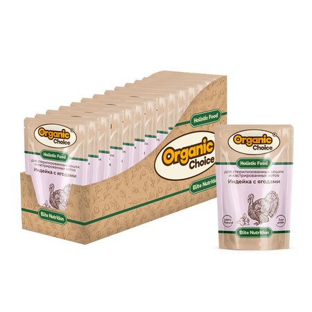 ORGANIC CHOICE 85 Г ПАУЧ ПОЛНОРАЦИОННЫЙ КОНСЕРВИРОВАННЫЙ КОРМ ДЛЯ СТЕРИЛИЗОВАННЫХ КОШЕК И КАСТРИРОВАННЫХ КОТОВ ИНДЕЙКА С ЯГОДАМИ В СОУСЕ