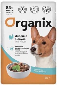 Organix паучи паучи для собак "Идеальная кожа и шерсть": индейка в соусе 85гр