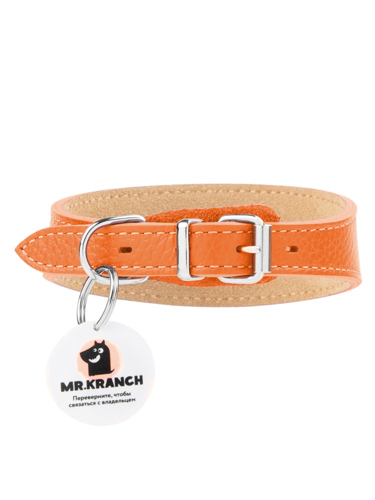 Ошейник-селедка Mr.Kranch для собак из натуральной кожи с QR-адресником, 19-23см, оранжевый