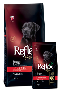 REFLEX PLUS MEDIUM LARGE BREED ADULT DOG FOOD LAMB AND RICE СУХОЙ КОРМ ДЛЯ СОБАК СРЕДНИХ И КРУПНЫХ ПОРОД С ЯГНЕНКОМ И РИСОМ