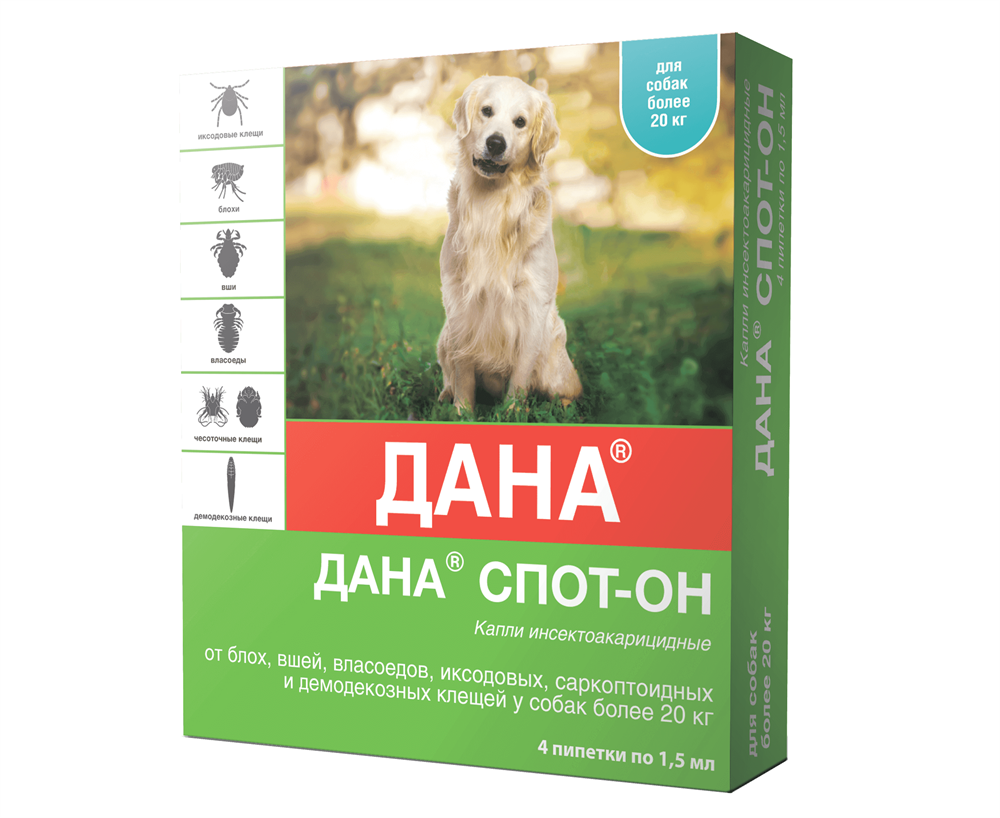 ДАНА СПОТ-ОН капли на холку д/собак и щенков от 20кг, 1,5мл №4(фипронил)