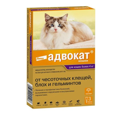 Адвокат® кошки – комплексный препарат компании Elanco, который помогает защищать вашего питомца от широкого спектра внешних (блох, чесоточных клещей) и внутренних (глистов) паразитов.