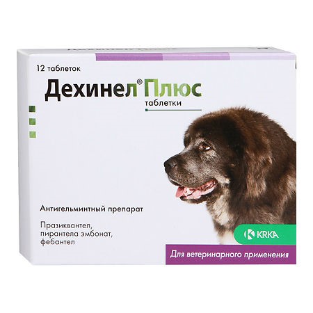 Дехинел Плюс, благодаря входящим в его состав действующим веществам, обладает антипаразитарной активностью в отношении цестод: Echinococcus granulosus, Echinococcus multilocularis, Mesocestoides lineatus, Diphyllobothrium latum, Dipylidium caninum, Multiceps multiceps, Taenia spp. и нематод: Toxocara canis, Toxascaris leonina, Uncinaria spp., Ancylostoma spp., Trichuris vulpis. Фебантел, умеренно всасываясь из желудочно-кишечного тракта, вызывает у нематод угнетение синтеза белка тубулина и процесса поступления глюкозы, одновременно ингибирует фумаратредуктазу — фермент, ответственный за энергетический обмен гельминтов. Пирантел эмбонат очень плохо всасывается при пероральном введении и поэтому, оказывает свое действие непосредственно на поверхности слизистой оболочки желудочно-кишечного тракта больной собаки. Он блокирует у нематод нервно-мышечную передачу импульса и вызывает паралич мускулатуры гельминта, поэтому паразиты легко выводятся из желудочно-кишечного тракта хозяина. Празиквантел хорошо всасывается в желудочно-кишечном тракте и оказывает губительное действие на цестод (ленточных червей) за счет повышения проницаемости клеточных мембран паразитов для ионов кальция и угнетения фумаратредуктазы, что вызывает спастическое сокращение мускулатуры паразита, переходящее в паралич. Празиквантел выделяется с желчью в неизменном виде. Дехинел Плюс по степени воздействия на организм теплокровных животных относится к малоопасным веществам и в рекомендуемых дозах не оказывает сенсибилизирующего и гепатотоксического действия.