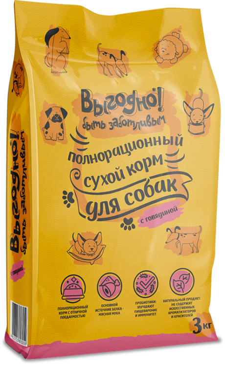 Выгодно Сухой полнорационный корм для собак мелких и средних пород «ГОВЯДИНА»